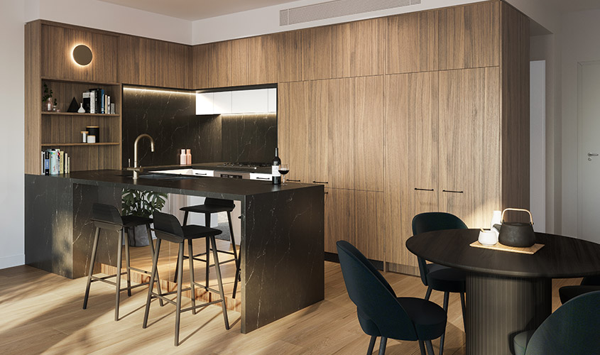 Located at the end of a quiet cul-de-sac, right next to the recently-upgraded Wilga Park, Platinum on Peach Tree is a rare find. Conceived by renowned architects Nordon Jago, and constructed with the expert craftsmanship of Ericon, the development offers residents boutique luxury, with stunning views, a rooftop garden, wellness centre, gym, BBQ area and outdoor pool. It is also the only development in the surrounding area located away from all major roads, in a quiet and peaceful location.